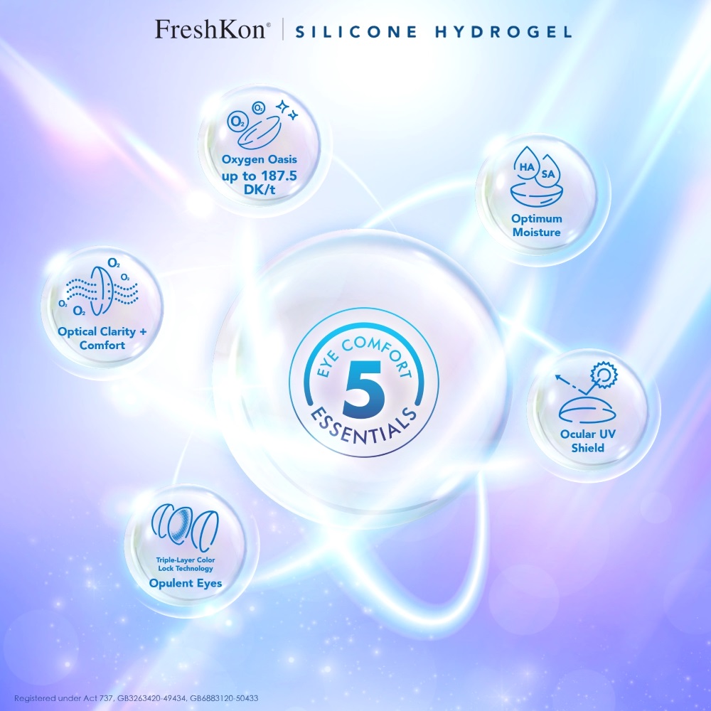 Who doesn’t want to make their eyes pop with a touch of charm? With Freshkon All Day O2xy Silicone Hydrogel 1Day Color, you can elevate your look effortlessly. These lenses aren’t just about adding colour—they’re your go-to for comfort, convenience, and confidence. Whether it’s a casual day out or a glamorous night event, Freshkon All Day O2xy Silicone Hydrogel 1-Day Color lenses have your back.
