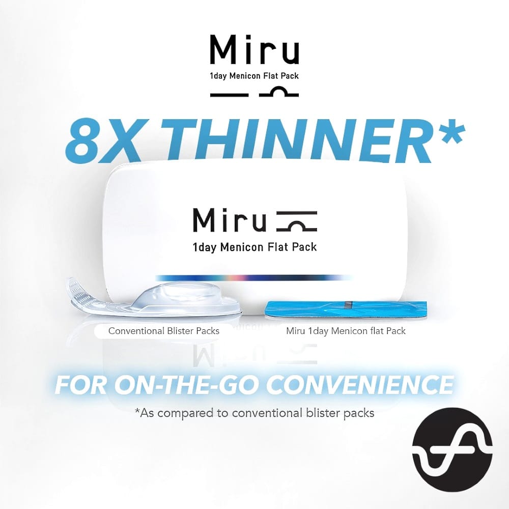 Miru 1Day Menicon Flat Pack is a premium daily disposable contact lens designed for maximum hygiene, comfort, and convenience, with a unique ultra-slim packaging concept.