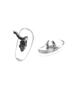 RB Clip-On Nose Pad is a 17mm Symmetrical Clip-On Nose Pad with two flat bars that can be bent to secure the pad to the nose pad arm. There are two prongs that need to be bent towards each other in order to grasp the metal piece that is attached to the frame. Originally found on many frames from the brand RayBan, which was created by Bausch and Lomb and is now owned by Luxottica.